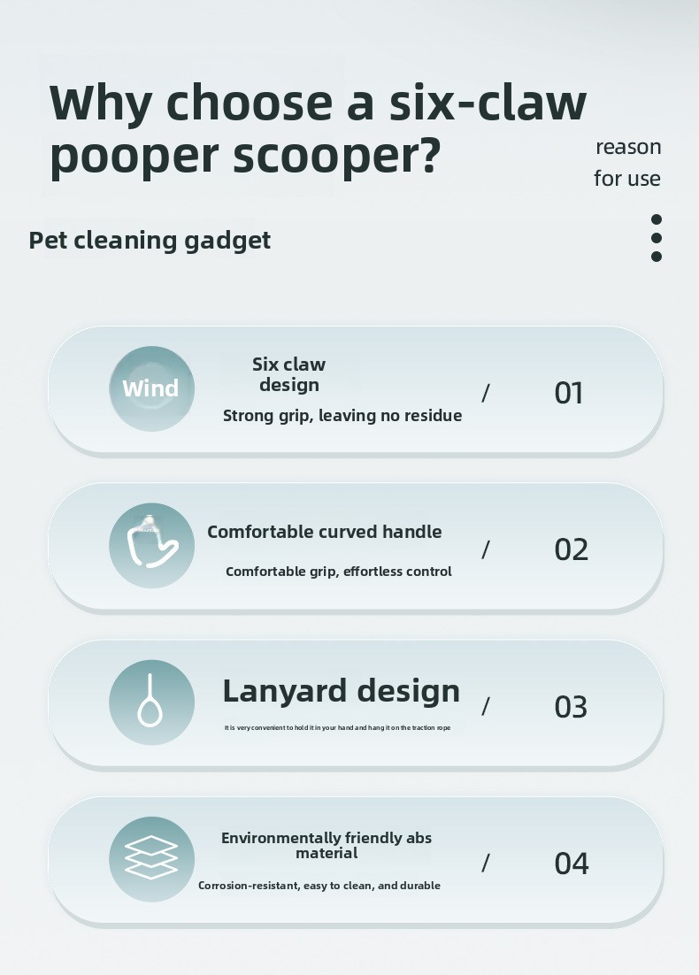 Diseño de seis garras: mecanismo de recogida de desechos de mascotas seguro y eficiente